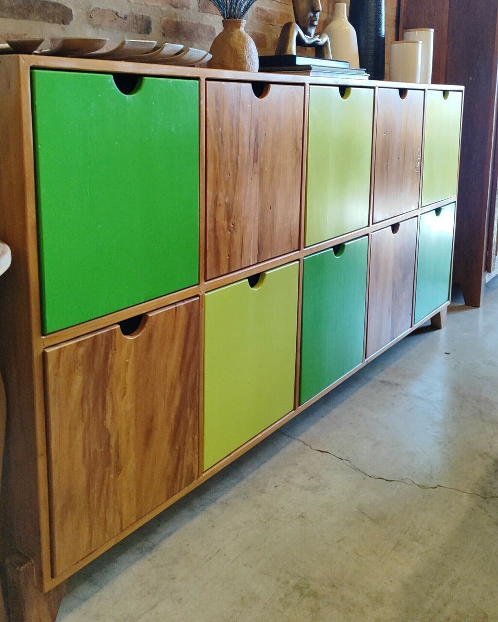 Este buffet combina a elegância da madeira de peroba com um toque moderno e vibrante, graças às 10 gavetas em cores exclusivas. Seu design único oferece um visual contemporâneo, perfeito para quem busca um móvel funcional e cheio de personalidade.