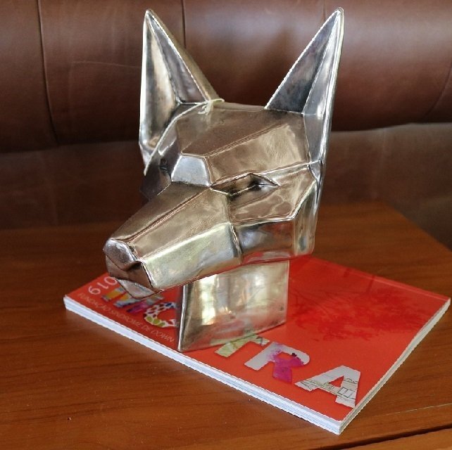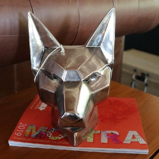 Decoração busto raposa, escultura em cerâmica, cor prata.