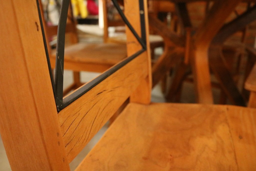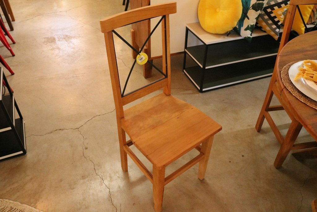 Cadeira de Madeira Maquinada e encosto X em Ferro Preto