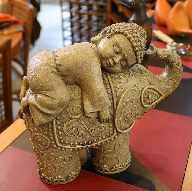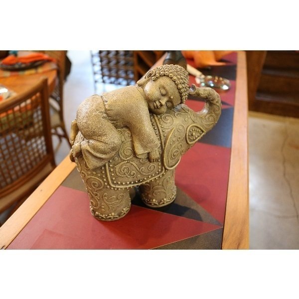 Decoração escultura buda e elefante em resina.