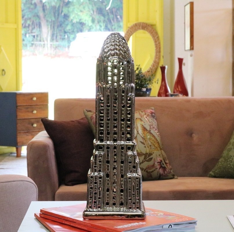 Descrição: Decoração Estátua New York, em resina, cor prata.