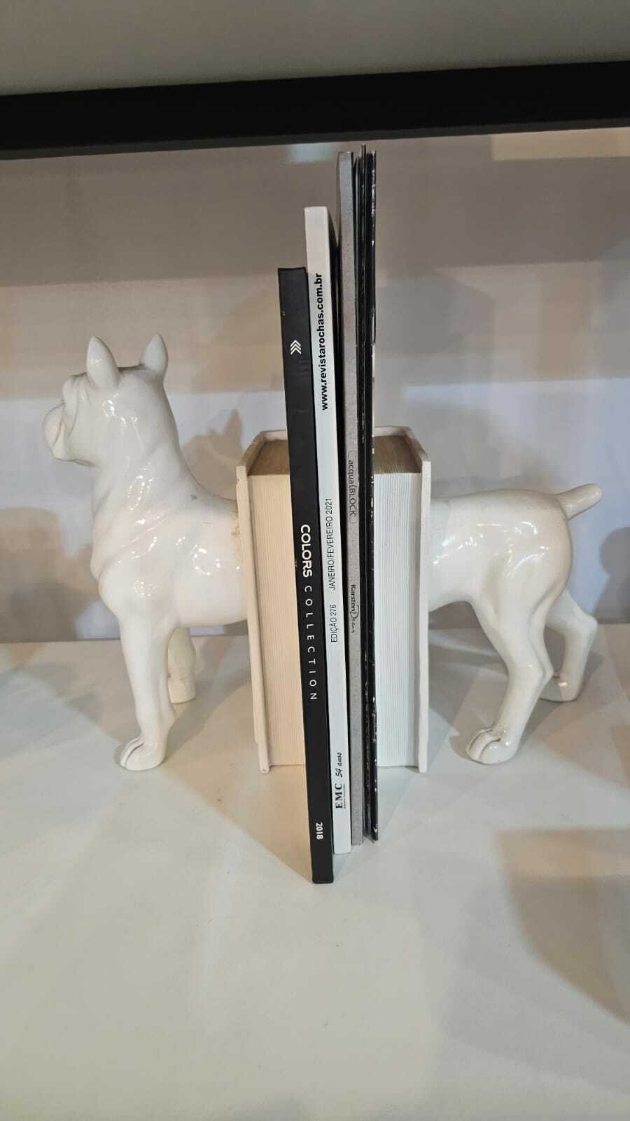 DECORAÇÃO SUPORTE LIVRO CACHORRO BRANCO