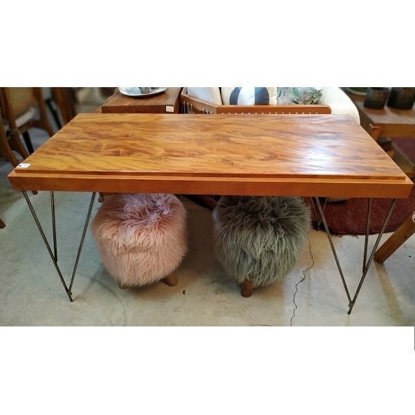 Escrivaninha de Peroba Rosa Maquinada Pés de Ferro Escovado