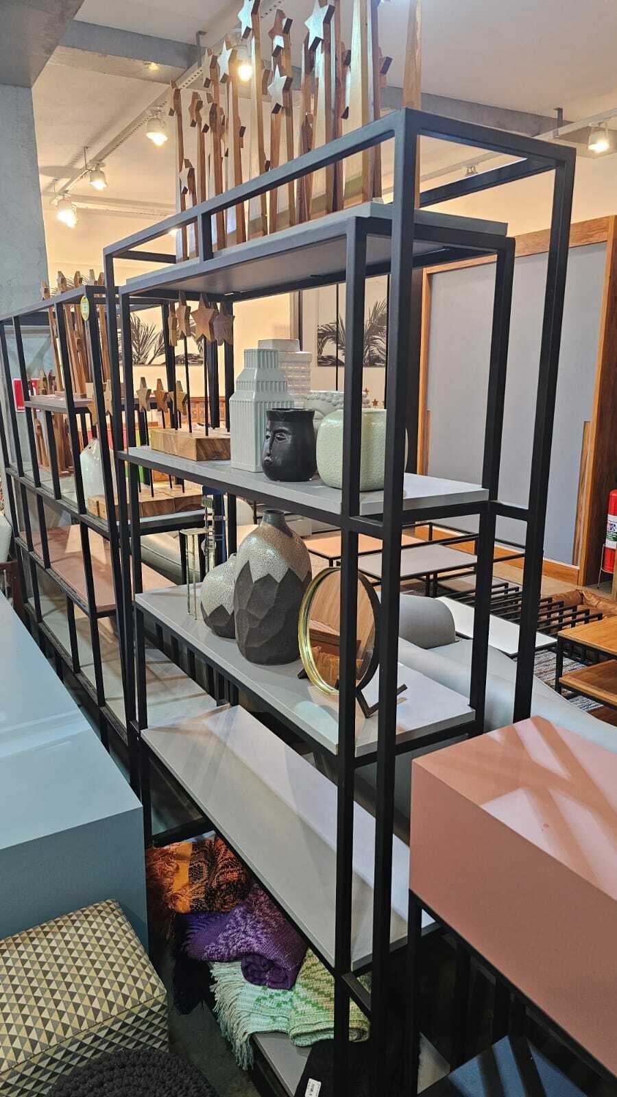 Estante metal e MDF cinza requadro 120x180x30