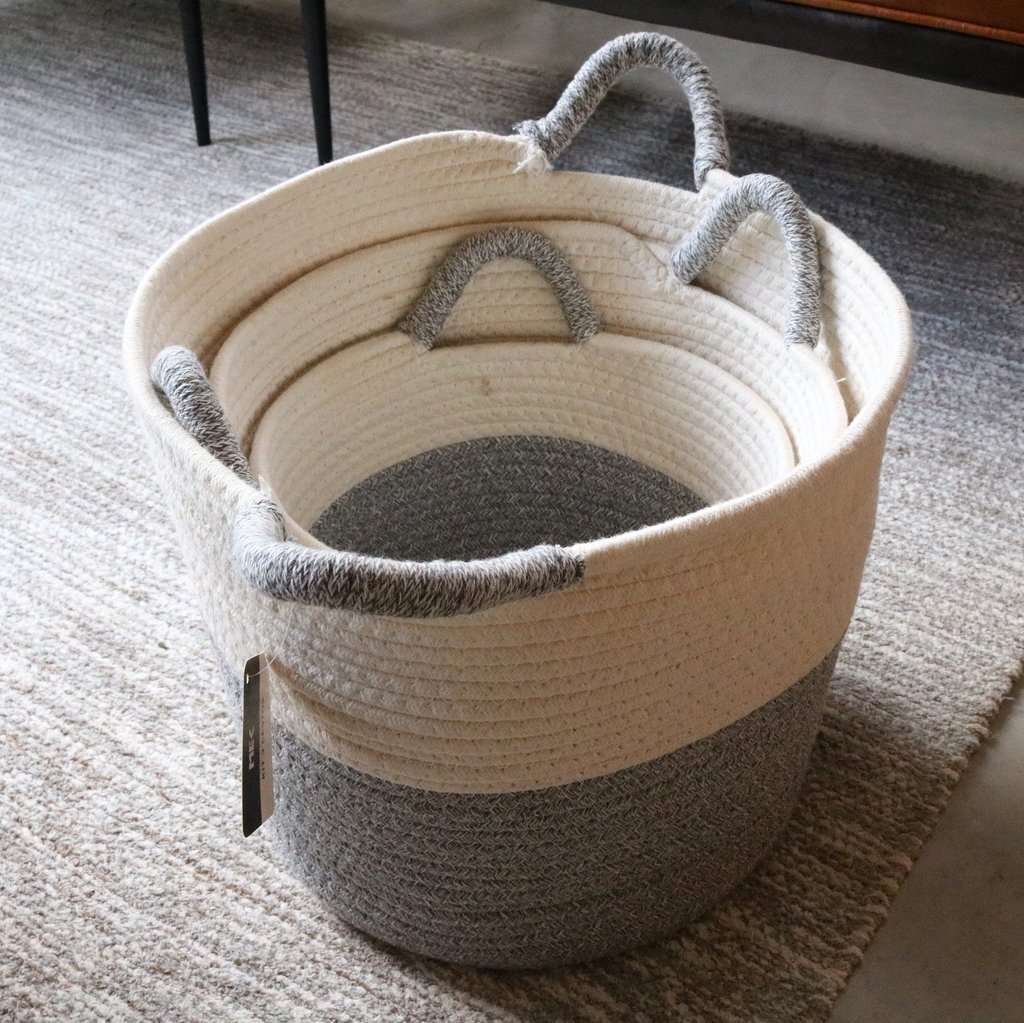 Kit de 3 Cestos Creative, cor branco e cinza.