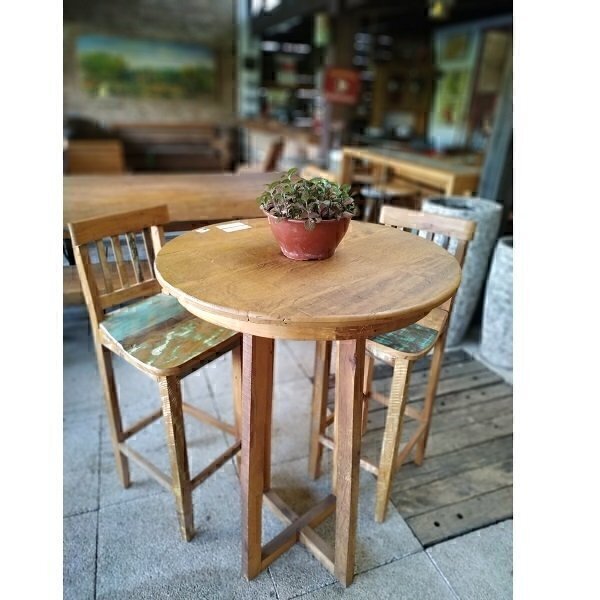 Mesa bistrô de Fabricação Artesanal em Madeira de Demolição, com Acabamento Maquinado.
