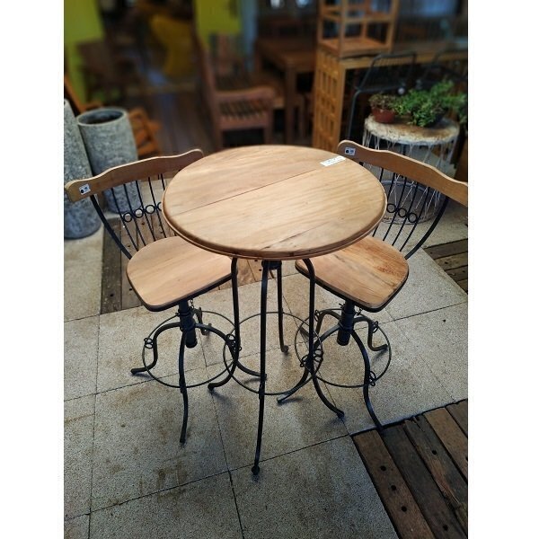 Mesa Bistrô de madeira de demolição peroba rosa com pés de ferro