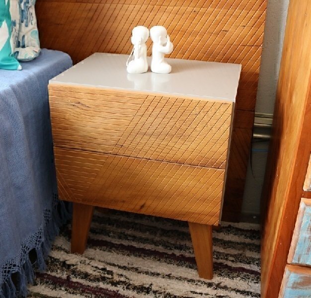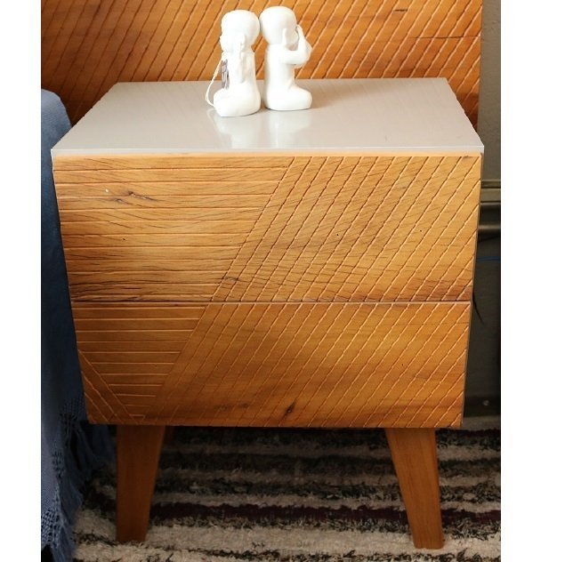 Mesa de cabeceira de Fabricação Artesanal em Madeira de Demolição, com Acabamento Maquinado e Generosa Camada de Cera de Carnaúba.