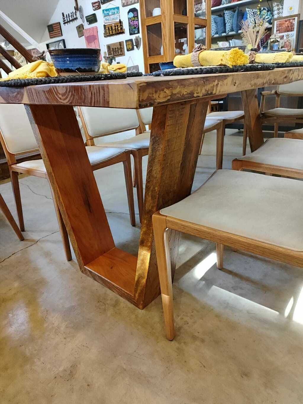 A mesa tem fabricação artesanal com madeira reciclada de antigas casas demolidas; daí surge a expressão “Móveis de Madeira de Demolição”.Essa madeira de demolição recebe um tratamento artesanal e, posteriormente, vai para a marcenaria ganhar forma e originalidade para compor ambientes com design de interiores sofisticado.