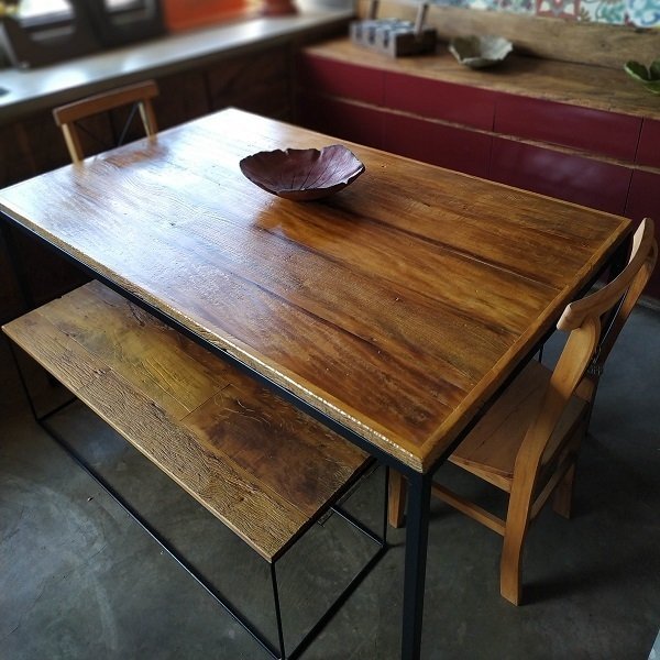 Mesa de Fabricação Artesanal em Madeira de Demolição, com Acabamento Maquinado e Generosa Camada de Cera de Carnaúba.
