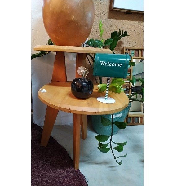 Mesa Lateral Redonda Dois Níveis Madeira