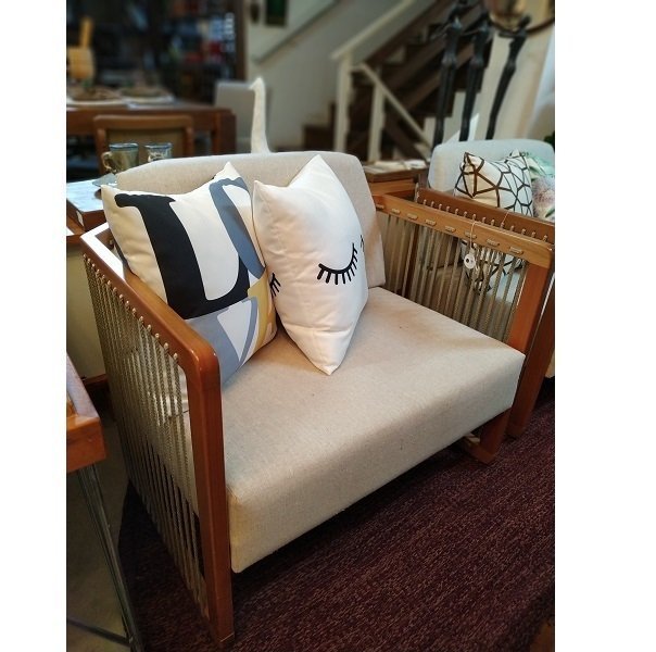 Poltrona Mava Osky em Madeira com cordas e estofado.