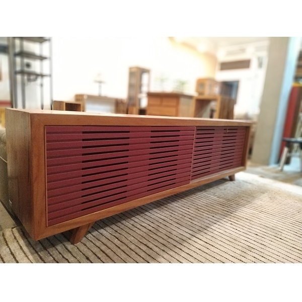 Rack Grid Madeira Maquina com portas de correr em MDF Vermelho