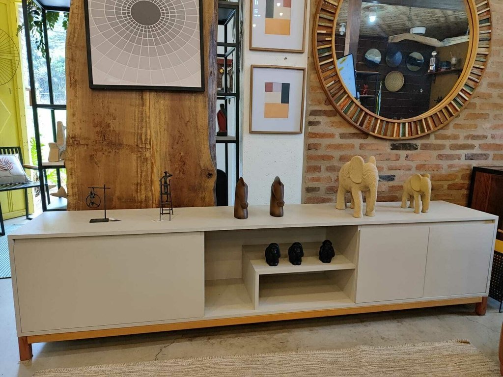 Rack de Fabricação Artesanal em MDF e Madeira de Demolição, com Acabamento Maquinada.
