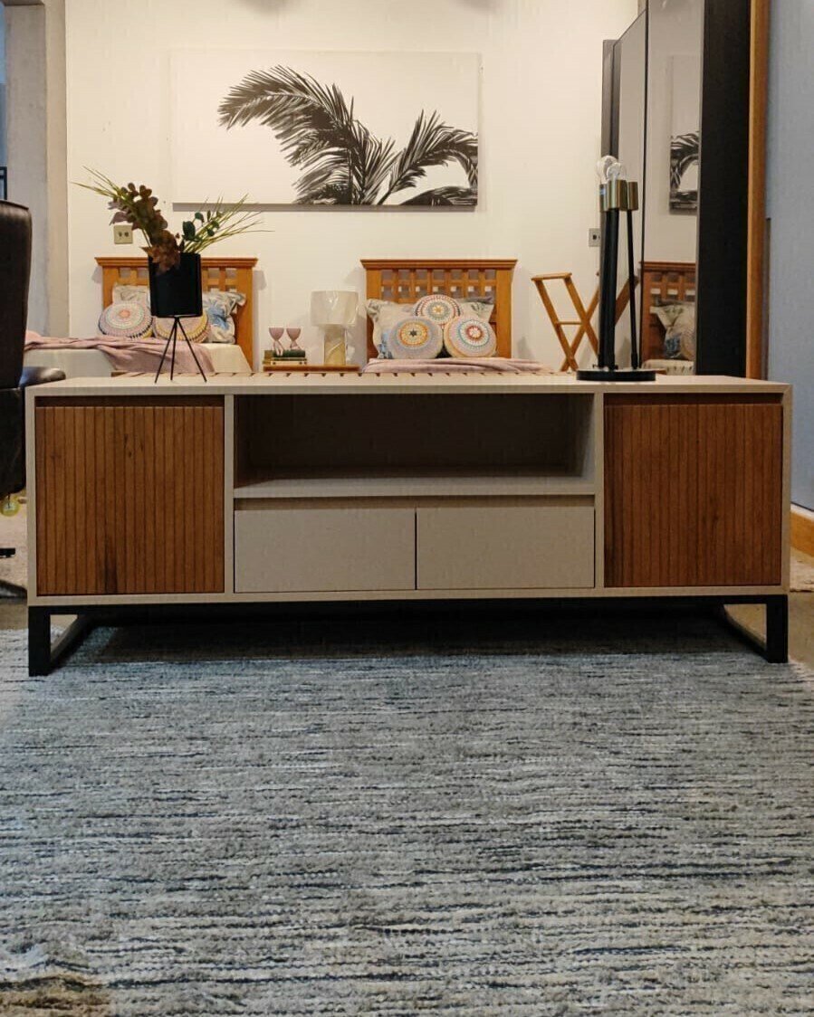 Materiais de alta qualidade: Estrutura em peroba e MDF, garantindo resistência e durabilidade. Pés de ferro: Proporcionam estabilidade e um visual contemporâneo. Design sofisticado: Mistura de elementos rústicos e modernos, tornando-se um destaque no ambiente. Funcionalidade: Espaço ideal para acomodar eletrônicos, decoração e itens essenciais do dia a dia. Versatilidade: Perfeito para salas de estar, home offices ou espaços comerciais.