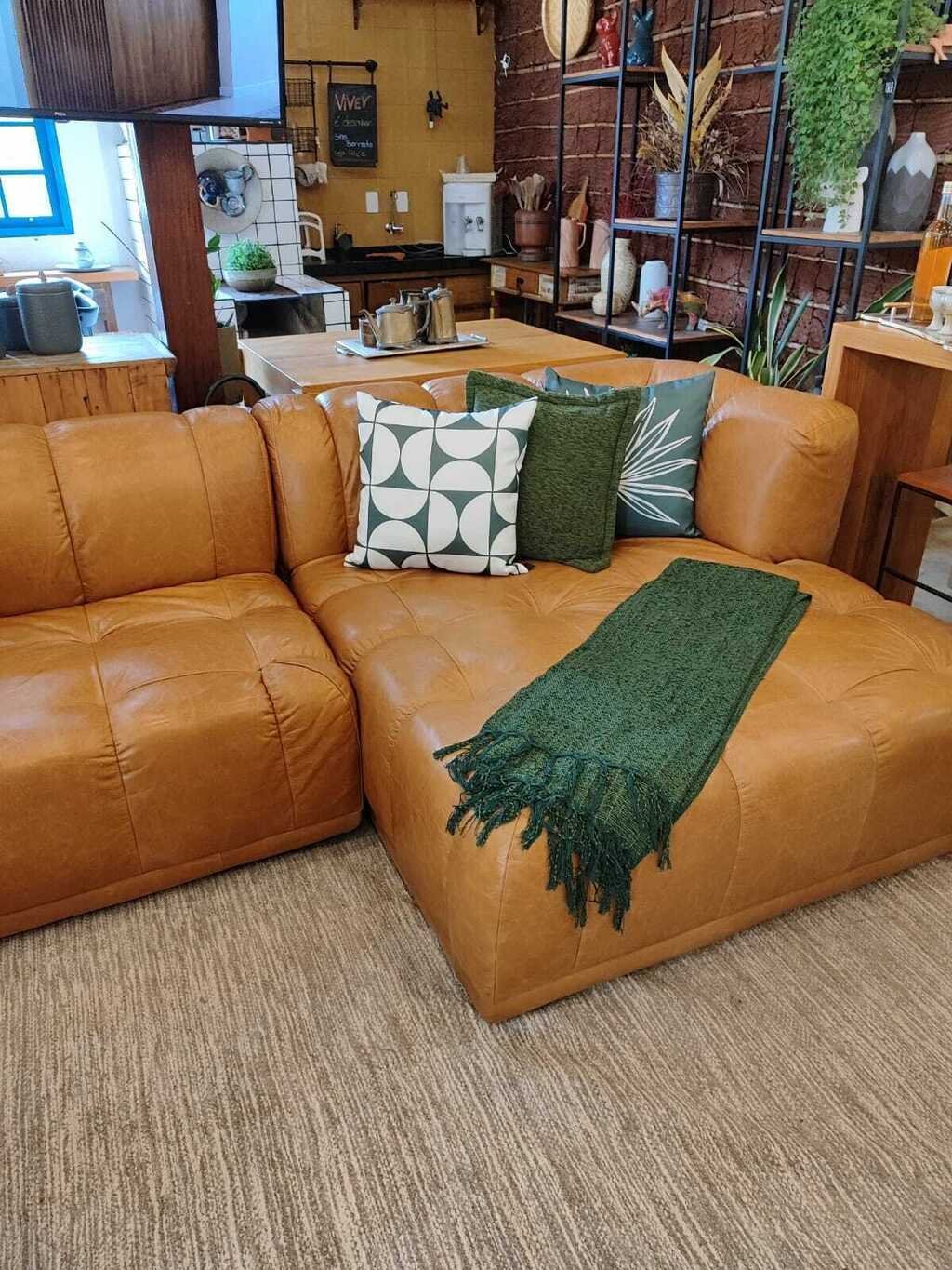 Sofá Wave Couro Primo Butter  Caramelo c/ 2 partes